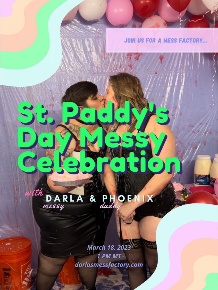 The Mess Factory is hosting a super fun and incredibly messy St. Paddy's Day Celebration!! Come join us on Saturday at 1 PM MT/ 8 PM UK time on Chaturbate as we throw the meanest, greenest live messy session of the year! Daddy Phoenix will be our special guest this week :love: join us as we get absolutely covered in green gunge, frosting, pies and more!! Let's celebrate the day messy style :D You definitely don't want to miss it